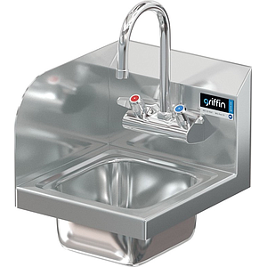 BRAZOS 16GA 14 X 10 X 5 HANDSINK W / WALL FAUCET END SPLASH BOTH SIDES